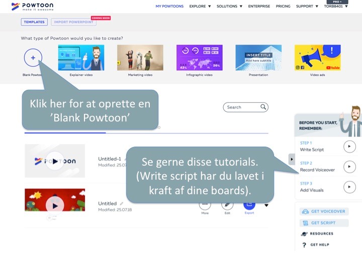 Gå videre til næste trin, når du har oprettet din PowToon.